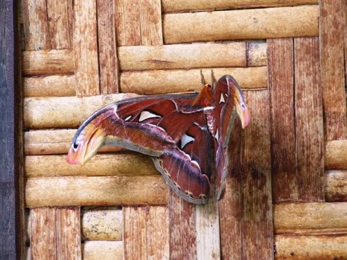Billedet af den her ting som jeg troede var en sommerfugl var, fik jeg senere fortalt, verdens største natsværmer. Billederne som i ser, er de eneste jeg kunne tage uden at forstyrre og måske forskrække den, men den var KÆMPESTOR!!