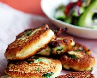 Opvarm olien på en pande. Form ikke for store fiskefrikadeller med en ske, og sæt dem på panden. Steg dem gyldne ved svag varme, 3-5 minutter på hver side. |